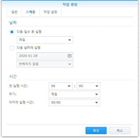 여기까지 하시면 시놀로지 나스 자동 재부팅 설정이 완료됩니다. 간단하죠? 설정하신 스케쥴러가 제대로 동작하는지 확인하기 위해 이메일 주소 넣어두시고, 문제 없다면 이후에 체크 지워주시면 됩니다.