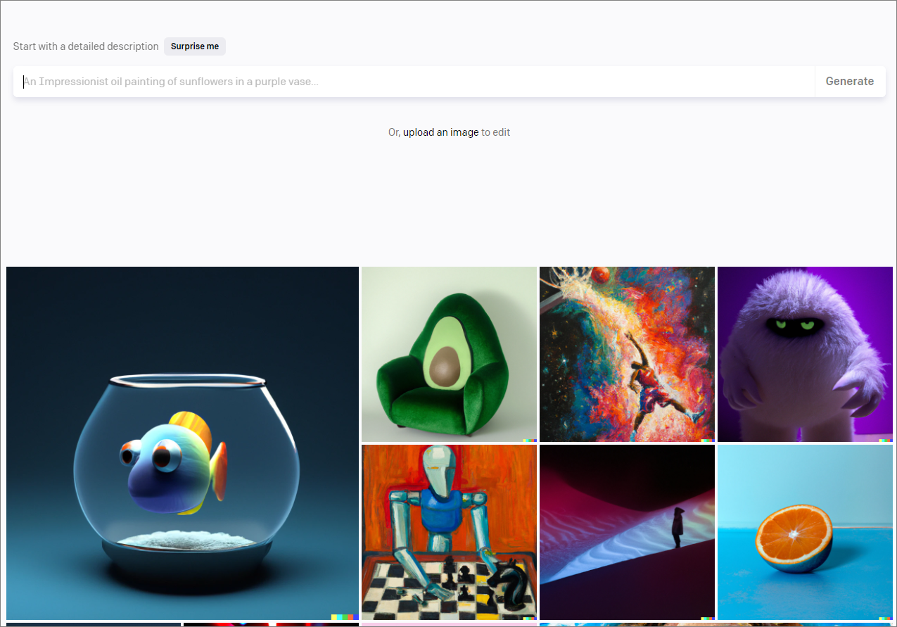 DALL-E2는 OpenAI의 GPT-3 기술로 구현된 서비스입니다. 몇 가지 키워드를 조합해서 텍스트를 입력하면 인공지능(AI)이 맞춤형 그림을 그려주는 사이트입니다. 단순 이미지가 아니라 창의적이고 상상력을 자극하는 결과물을 보여줘 이미 많은 사람들이 이용하고 있습니다.