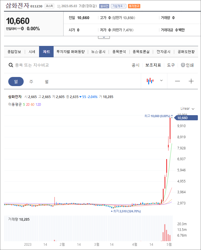 삼화전자 주가 장중 상한가, 테슬라 페라이트 사용 기대감에 연일 급등