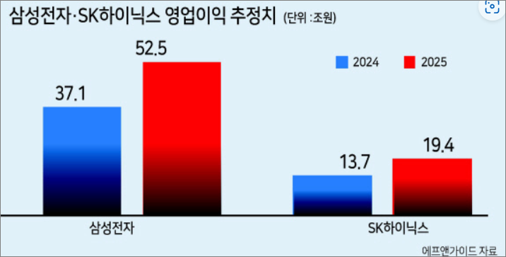증권사들은 삼성전자의 올해 영업이익이 37조원대에 이를 것으로, 내년에는 5년 만에 50조원대로 회복할 것으로 내다봤습니다. 지난해 적자에서 벗어난 SK하이닉스는 내년 역대 두 번째로 높은 19조원대 영업이익을 기록할 것으로 전망됩니다.
