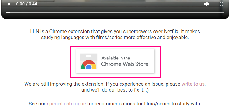 LLN is a Chrome extension that gives you superpowers over Netflix. It makes studying languages with films/series more effective and enjoyable. We are still improving the extension. If you experience an issue, please write to us, and we'll do our best to fi